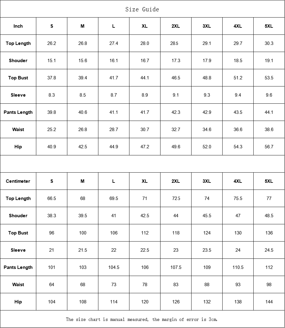 | Centimeter | S | M | L | XL | 2XL | 3XL | 4XL | 5XL |