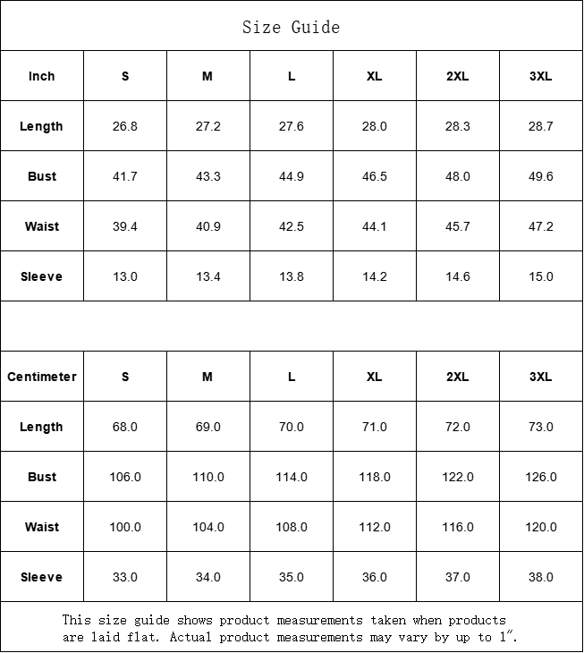| Centimeter | S | M | L | XL | 2XL | 3XL |
