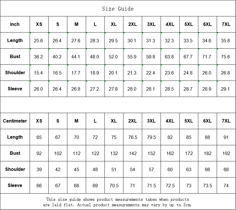 Centimeter | XS | S | M | L | XL | 2XL | 3XL | 4XL | 5XL | 6XL | 7XL |